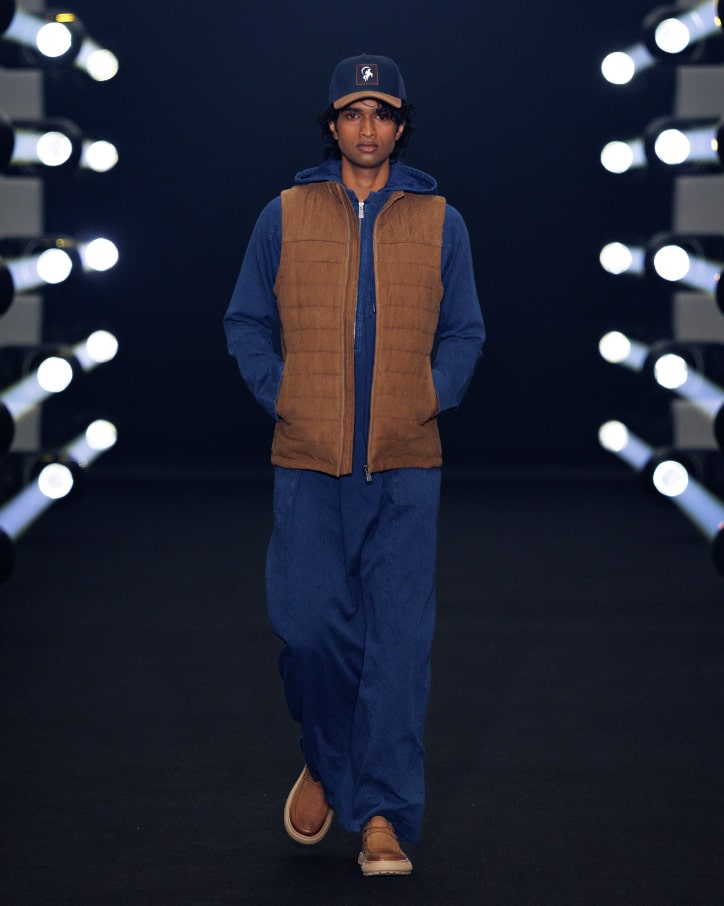 The denim thobe reimagined as a modern, sophisticated look.