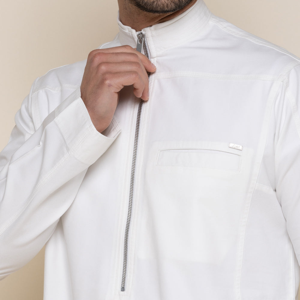 صُمم هذا الثوب الأبيض العاجي ليمنحك أناقة بلمسة جمالية عصرية. يتميز بياقة أنيقة وسحاب معدني في منتصف الجزء الأمامي، ومُزين بسحّاب خاص يحمل علامة مهيار، وجيب عملي. حيث يجمع بين الراحة البسيطة والتصميم الأنيق. مثالي لإطلالة أنيقة.