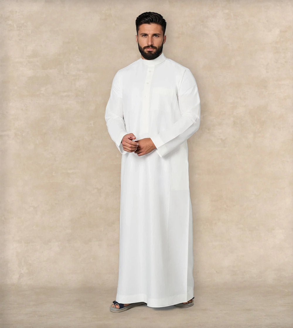 يتميز هذا الثوب الجاهز للارتداء بتصميم كلاسيكي، و مصمم بياقة ماندرين أنيقة، و سحاب مخفي على الزرزور، وأكمام عادية. مصنوع من قماش 100% بوليستر مع خاصية تجعيد أقل .
