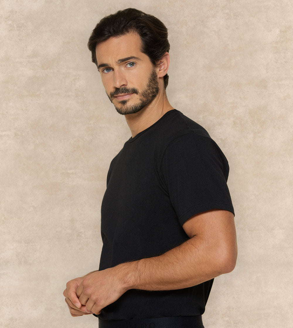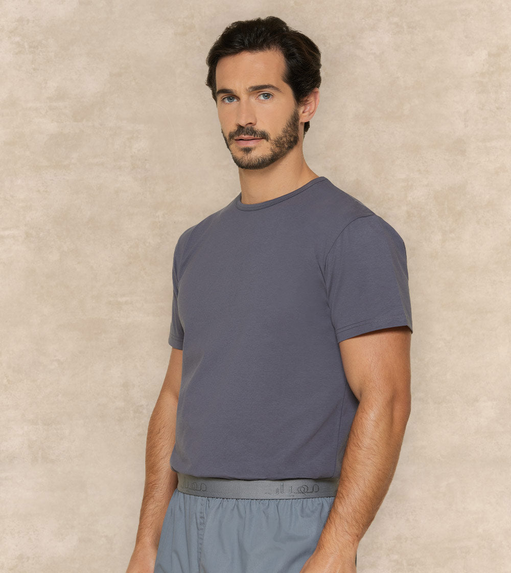 هذه الفانيلا الكلاسيكية بياقة دائرية تضمن لك راحةً طوال اليوم. مصنوعة من قماش عالي الجودة، 95% قطن و5% سباندكس.